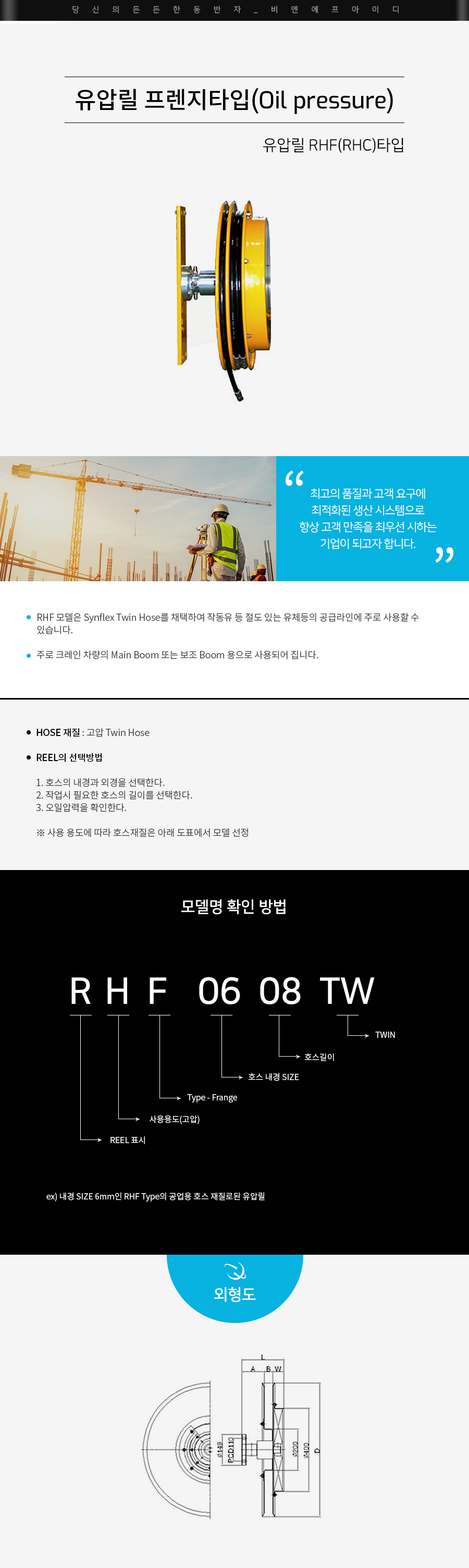 | RHF0610-TW | 10M | 106.5 | 41 | 46 | 193.5 | 525 | SYNFLEX 1/4" 트윈 |